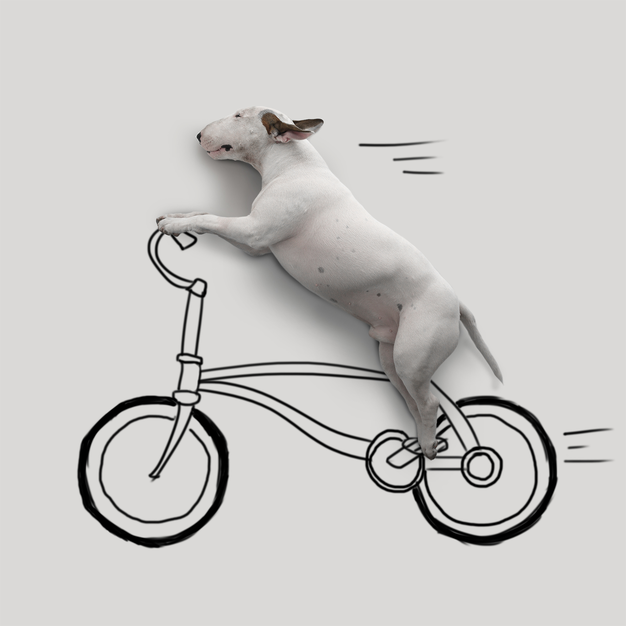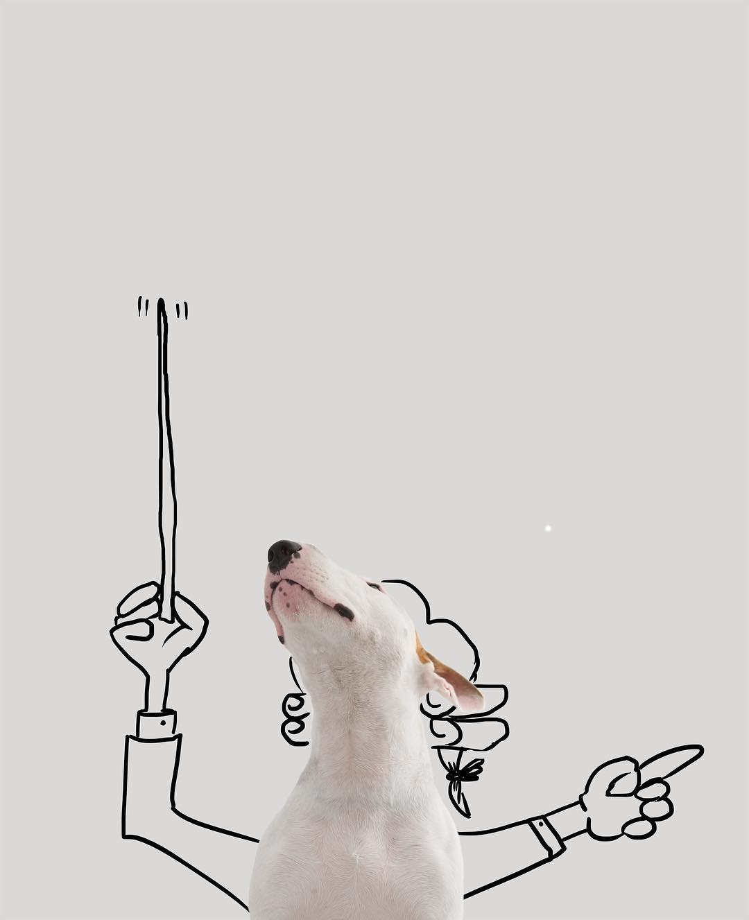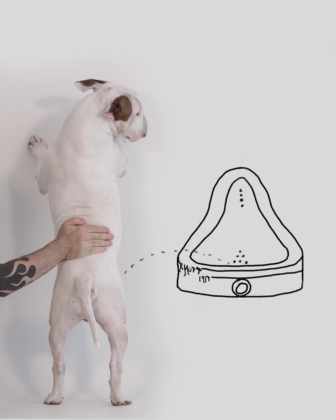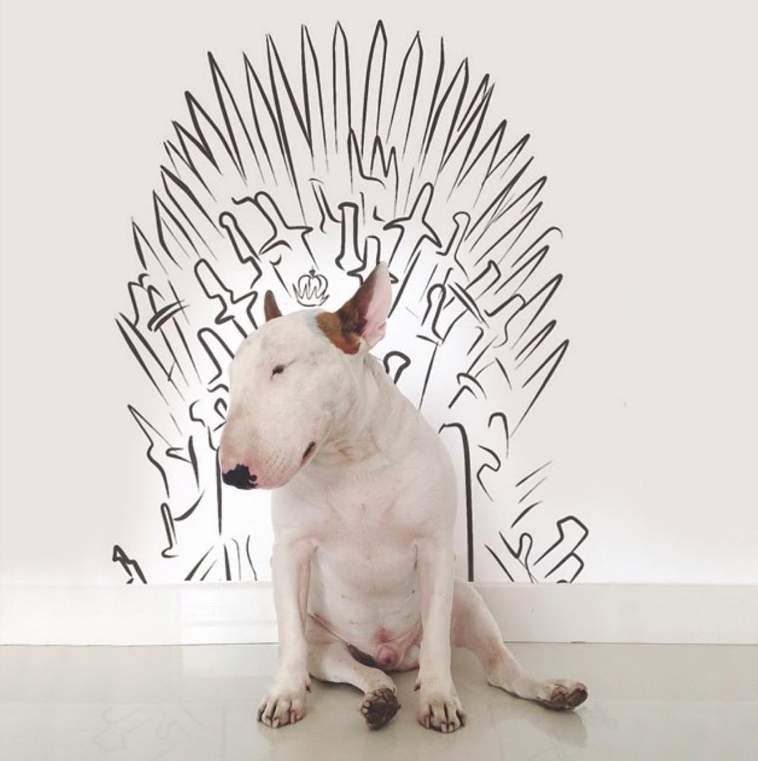 On Rafael Mantesso’s thirtieth birthday, his wife left him. She took their cookware, their furniture, their photos, their decorations. She left Rafael alone in an empty all-white apartment. The only thing she didn’t take was their bull terrier, whom she’d named after her favorite shoe designer: Jimmy Choo. With only Jimmy for company, Rafael found inspiration in his blank walls and his best friend and started snapping photos of Jimmy Choo as he trotted and cavorted around the house in glee. Then, when Jimmy collapsed in happy exhaustion next to the white wall, on a whim Rafael grabbed a marker and drew a new world around his ginger-eared pup. Suddenly, Rafael felt his long-dormant inspiration—for drawing, for art, for life—returning.