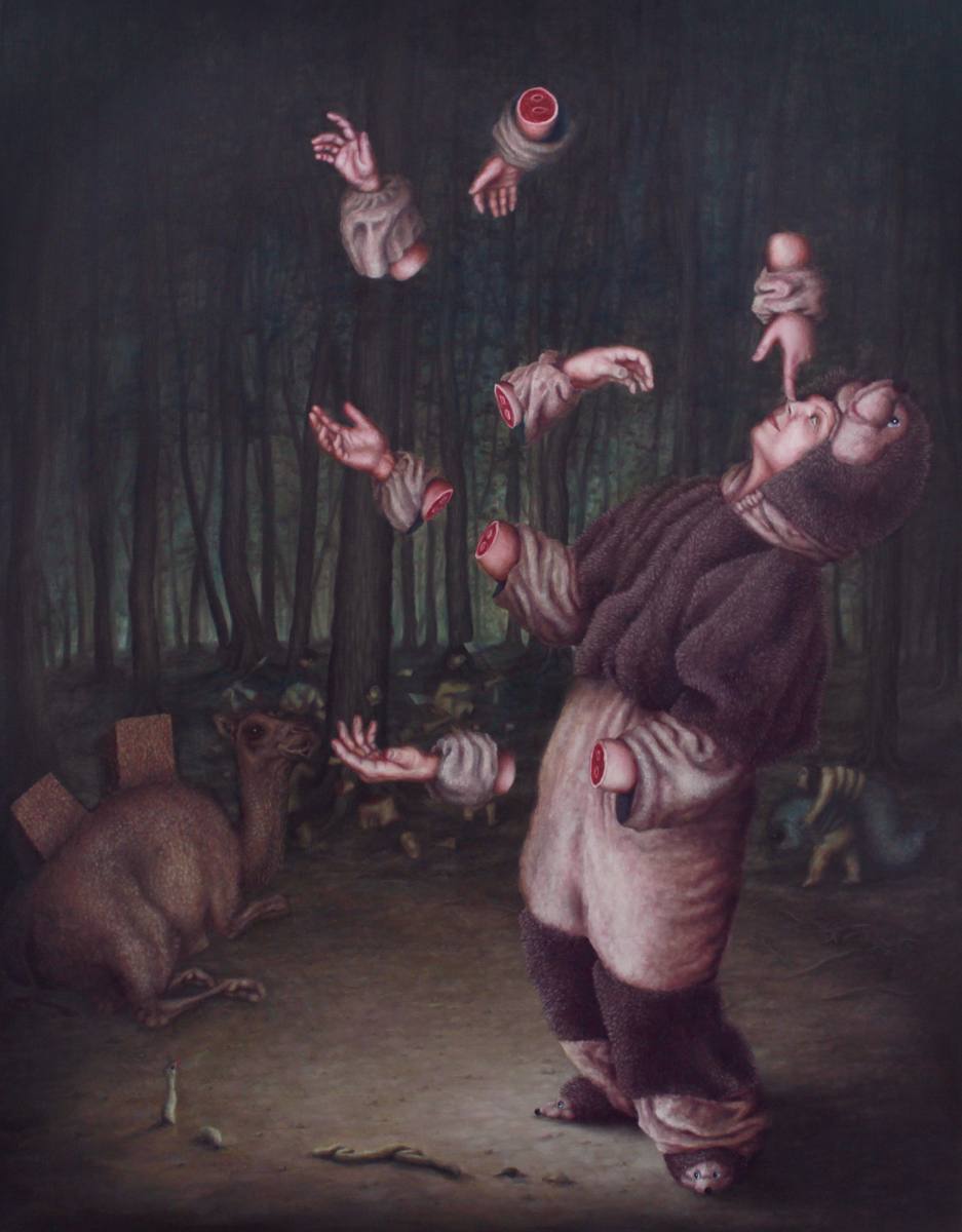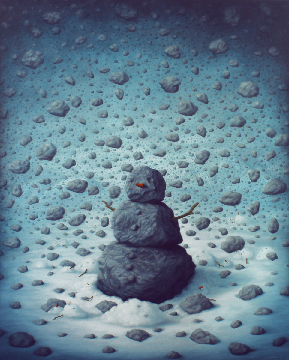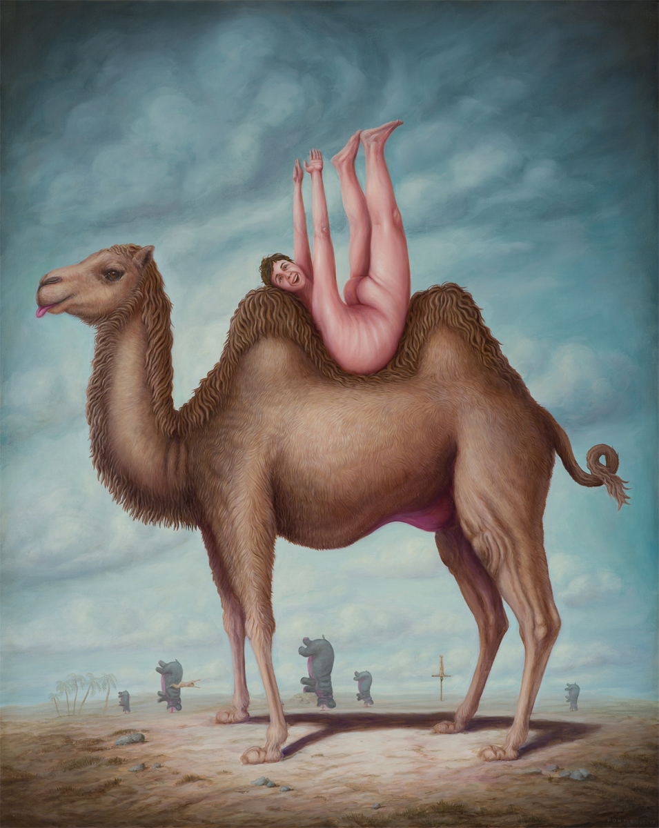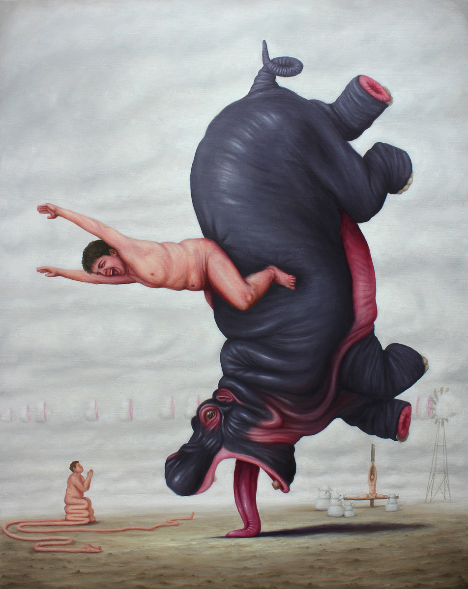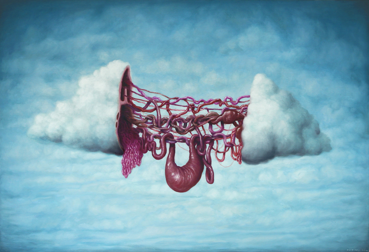 Bruno Pontiroli is a french pop surrealist artist based in Paris. His work aims at turning the narrow vision that we have of the world upside down. Bruno questions the identity of things and tries to reinvent it using representations or crafted settings based on a different logic. He thereby creates in his paintings a universe comprised of the absurd and paradoxes and often described as poetic or dreamlike and that definitely disturbs imagination.
