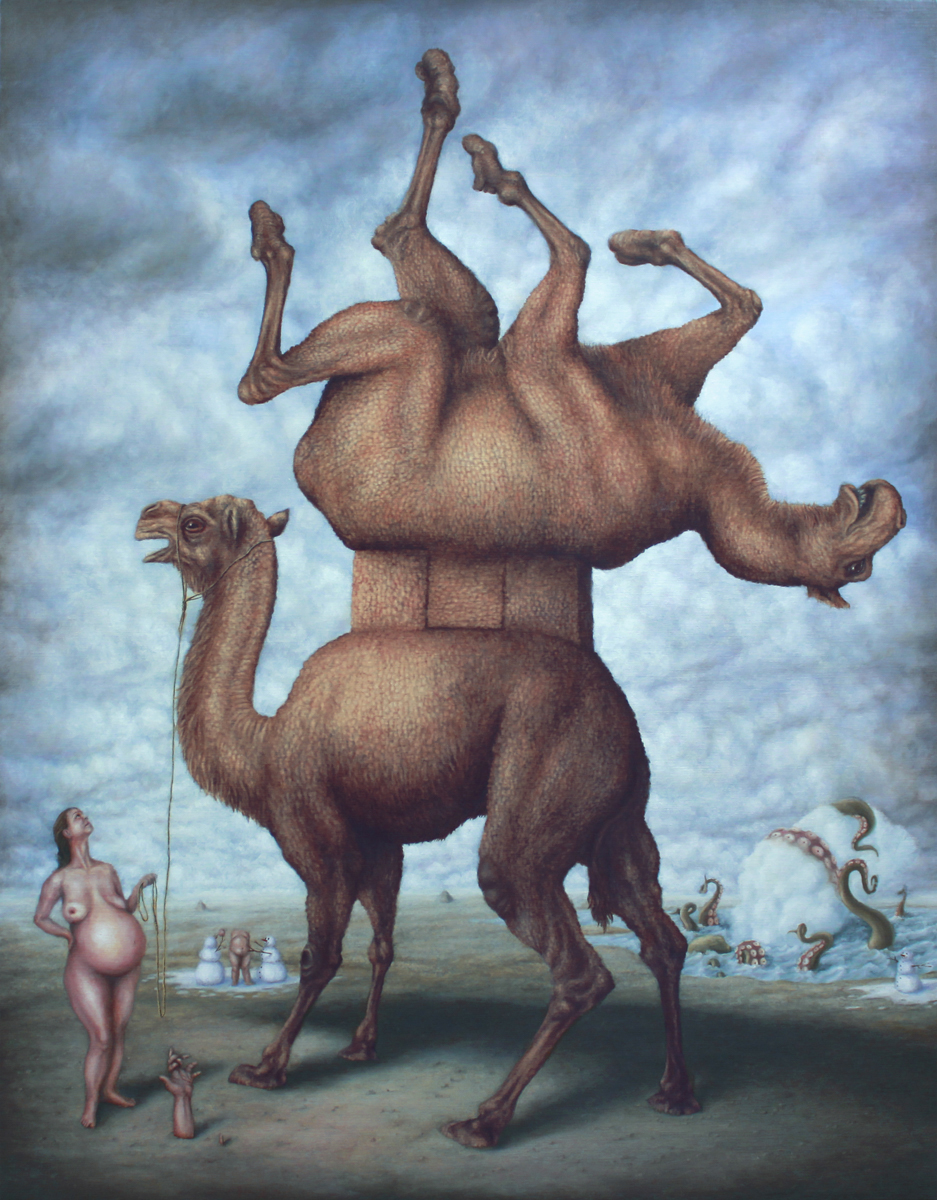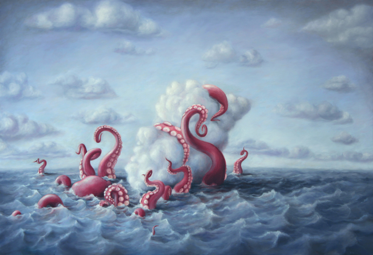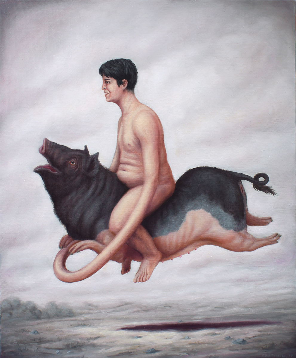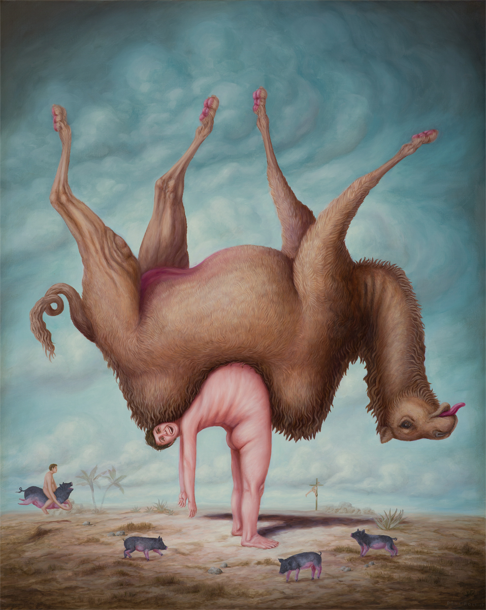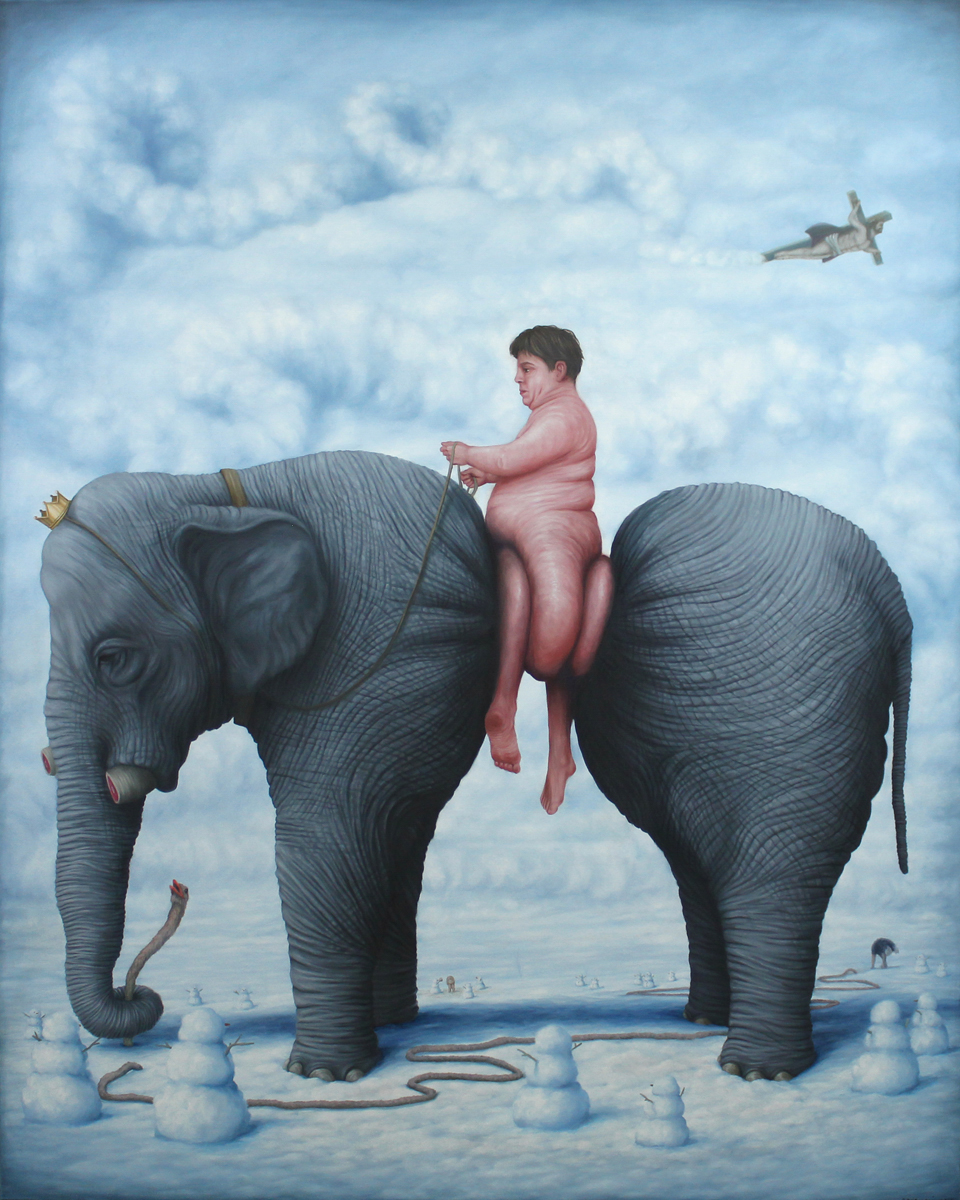 Bruno Pontiroli is a french pop surrealist artist based in Paris. His work aims at turning the narrow vision that we have of the world upside down. Bruno questions the identity of things and tries to reinvent it using representations or crafted settings based on a different logic. He thereby creates in his paintings a universe comprised of the absurd and paradoxes and often described as poetic or dreamlike and that definitely disturbs imagination.