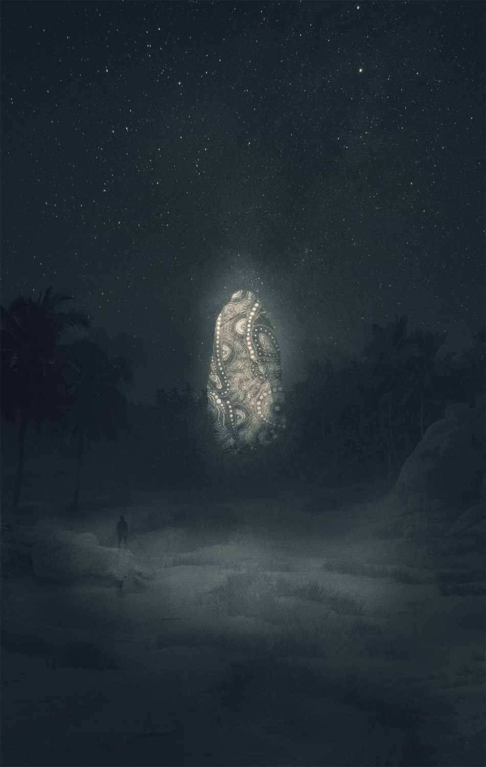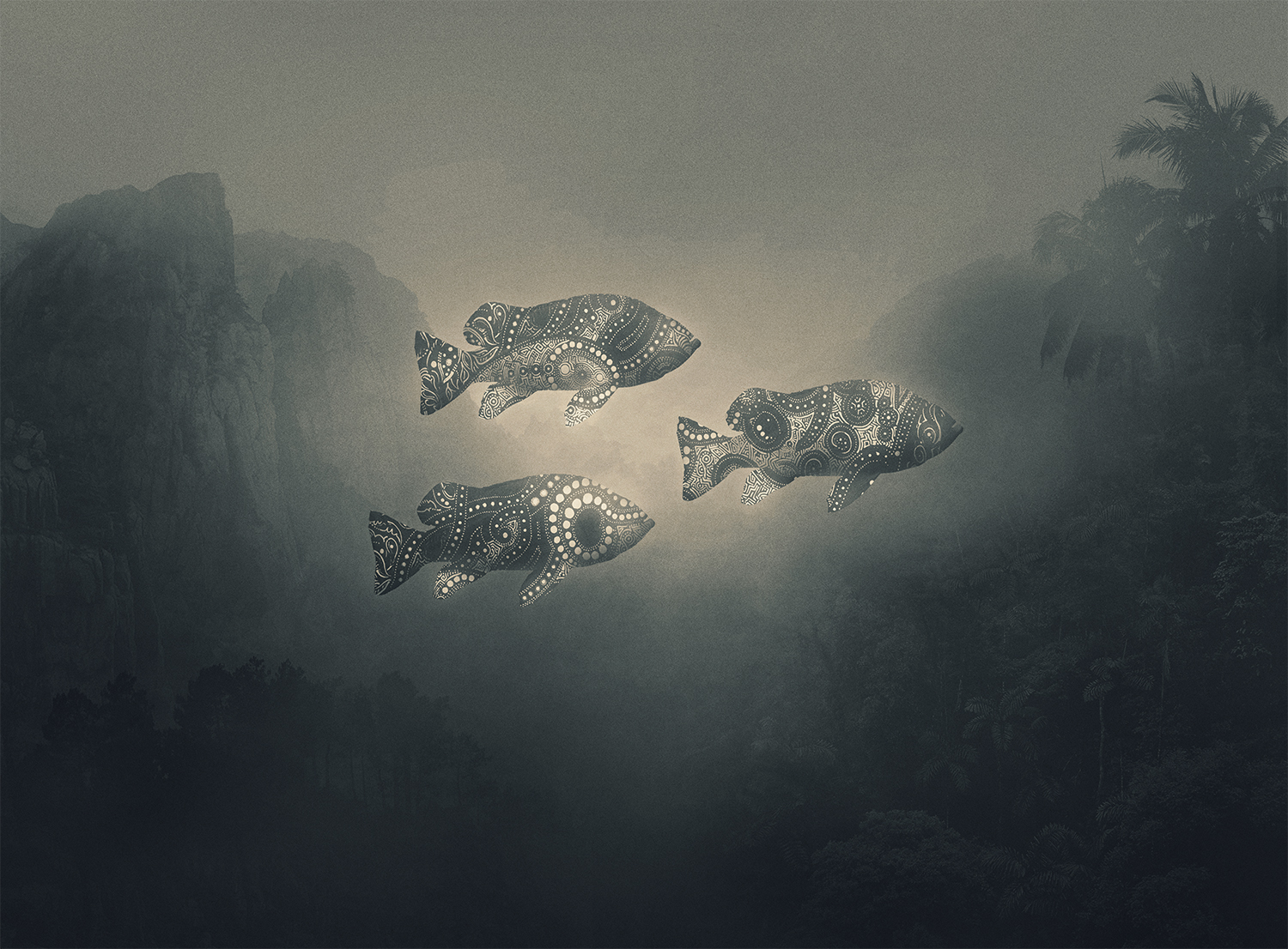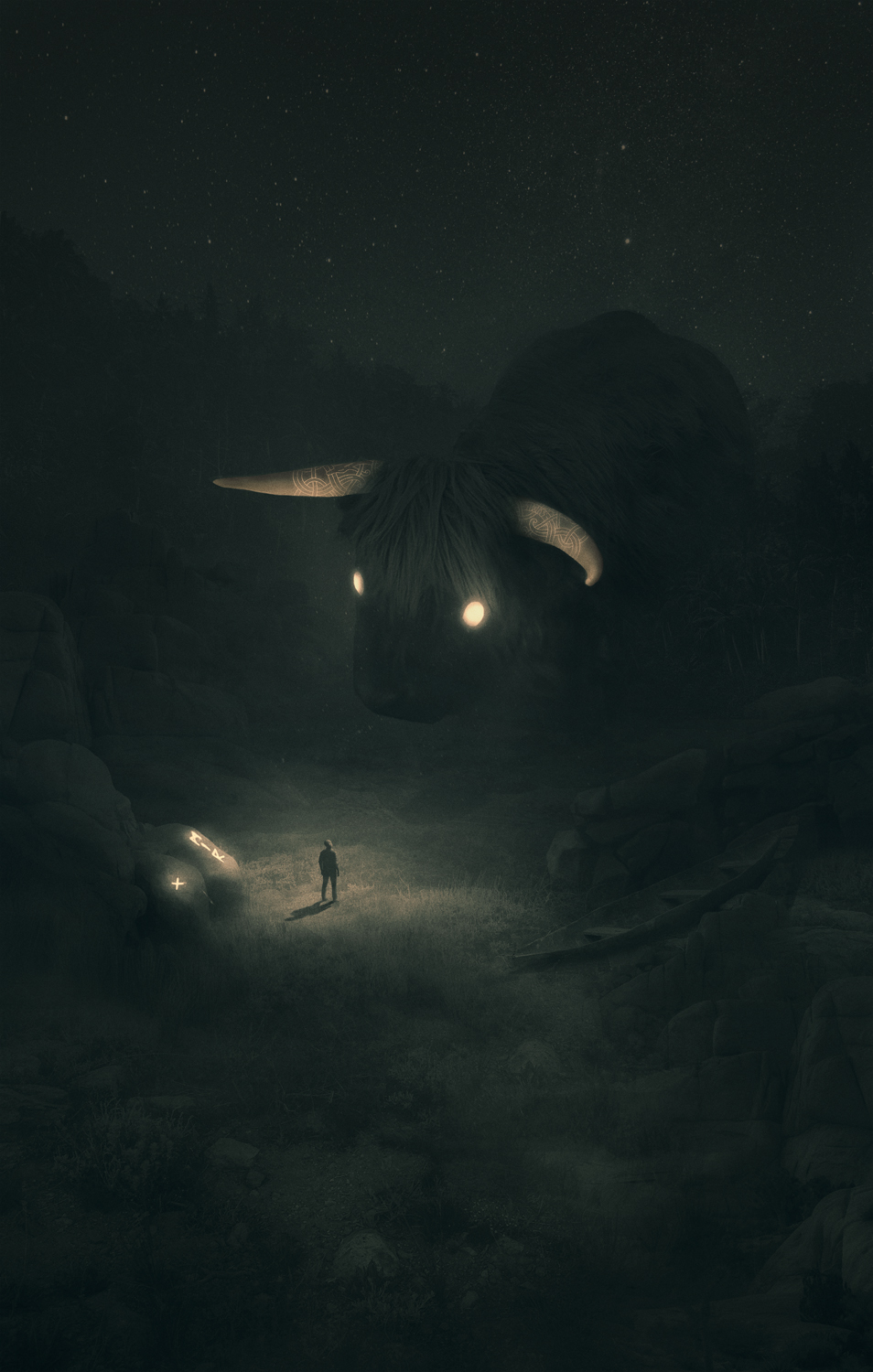 He tried to stop thinking about depression as a weakness and turn it into something brilliant. He started creating dark, mysterious and frightening images originating deep inside his mind. The recurring motif in his work is a small human figure lost in a dark jungle, facing huge creatures. Working on them and contemplating the final effect helped him grow his awareness of who he is and what he’s afraid of. It helped him see his emotions and confront them. It helped him get out of the jungle.