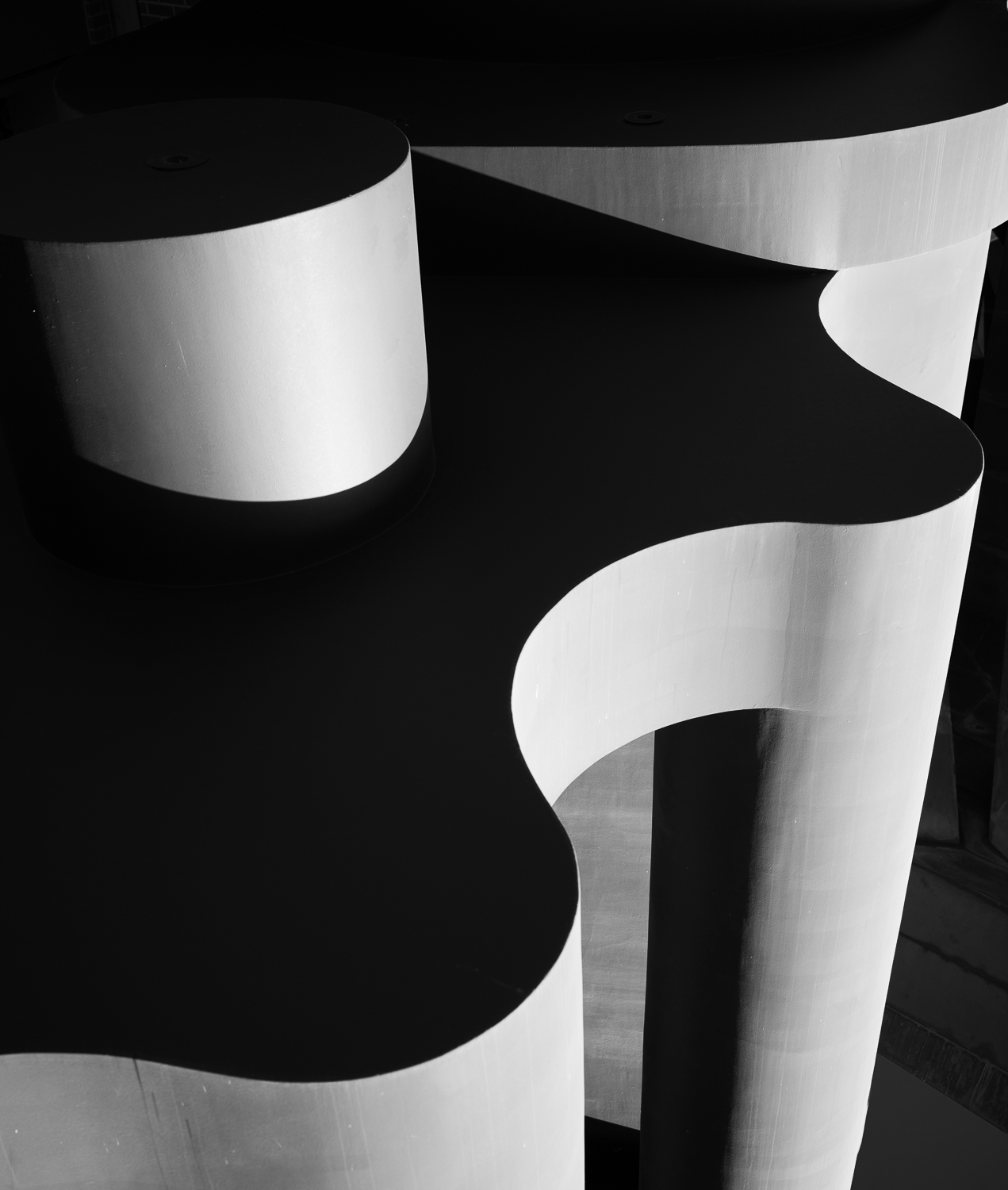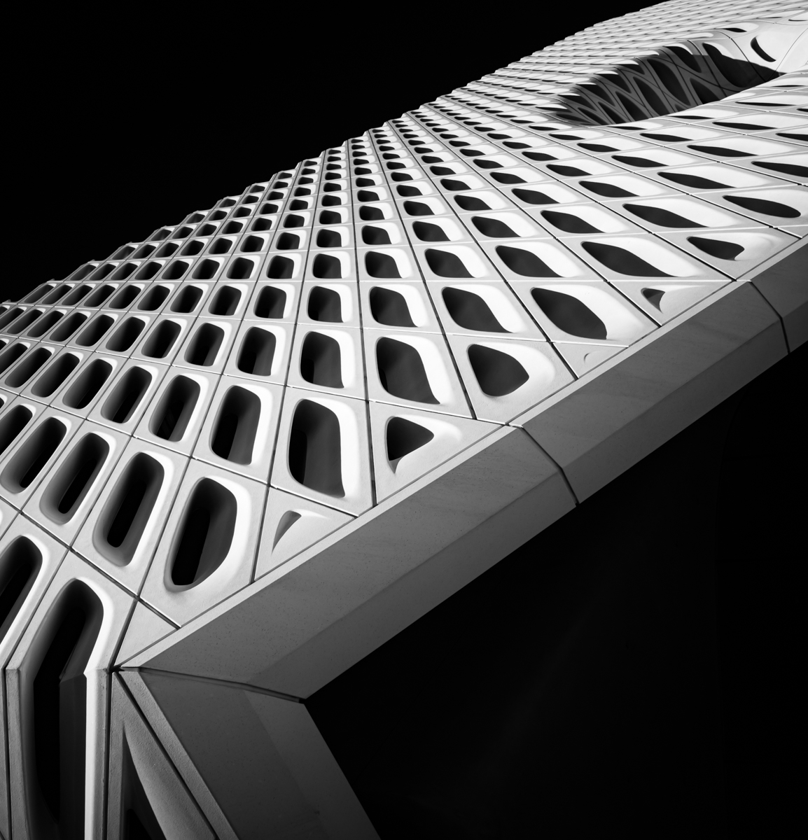 Depart from existing reality, these monochromatic architectural abstracts create fragmented and asymmetric compositions independent of time and space. The intricate studies of lines and forms invite viewers to experience the unique spatial relationship of a built environment.
