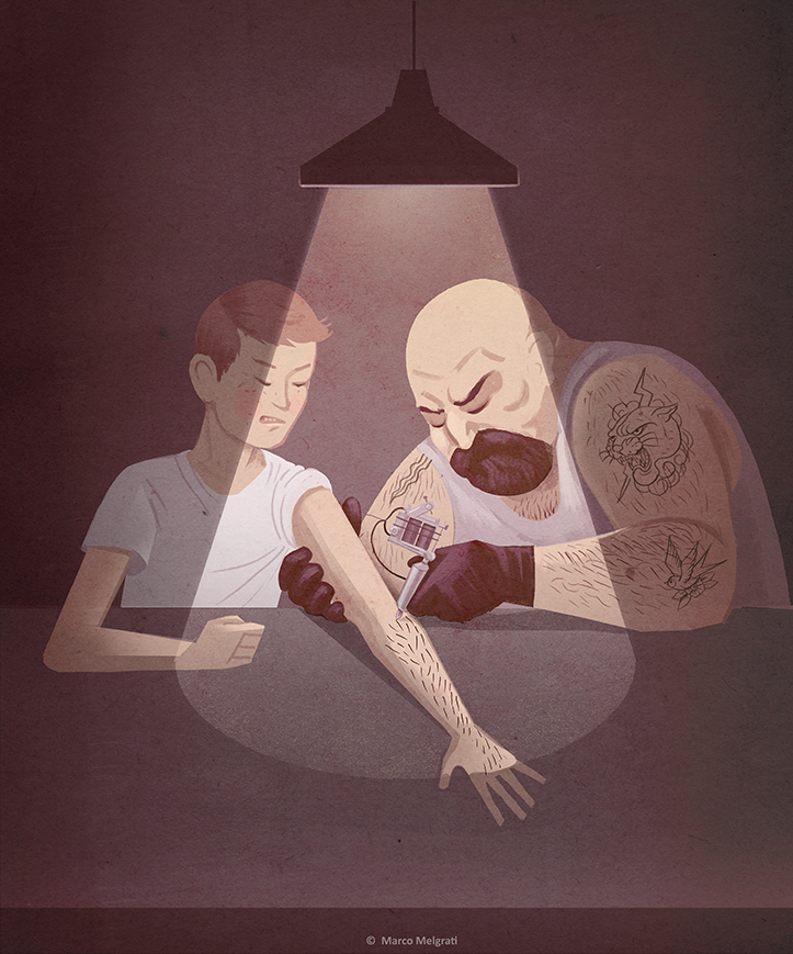 Marco Melgrati is an Italian artist specializing in digital illustration and painting. His style is conceptual illustration, in which idea and meaning become the focus through simple and clean images. He works remotely as a freelance illustrator for magazines and websites, mostly in the American and European markets. This has given him the freedom to become a true citizen of the world, working remotely from distant corners of the globe. He has lived in Mexico and Lithuania, where he now resides. At present, he is spending three months in Thailand, working on an art project for a Bangkok based gallery.