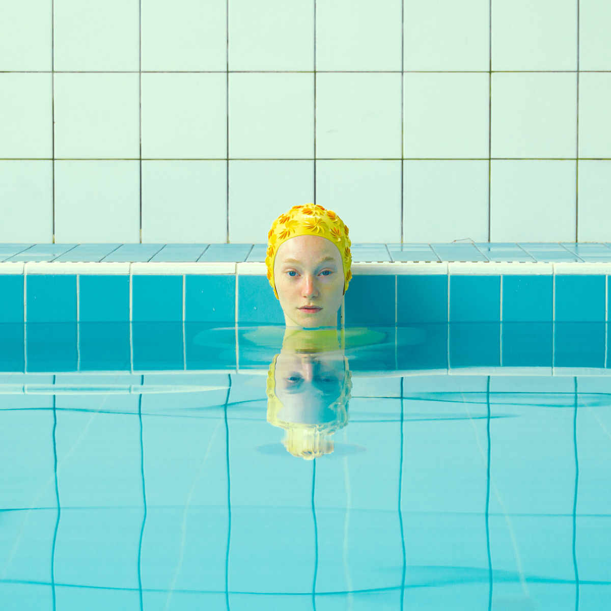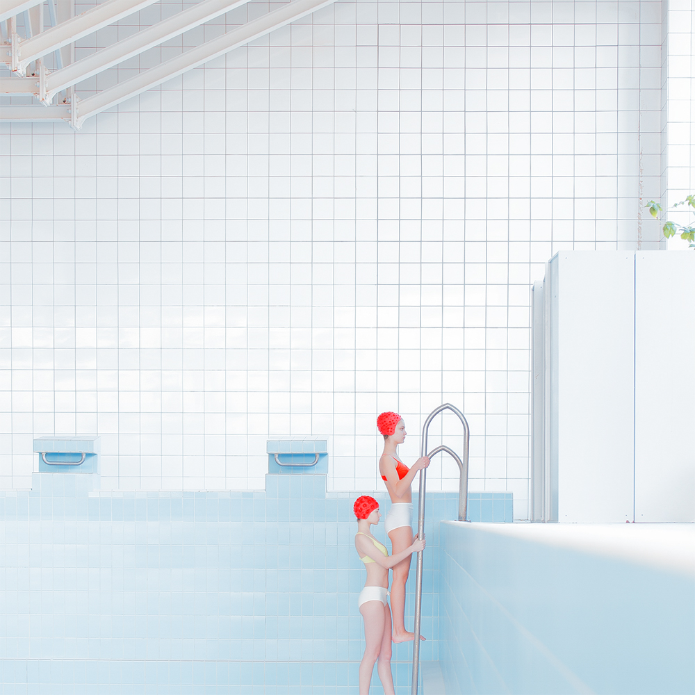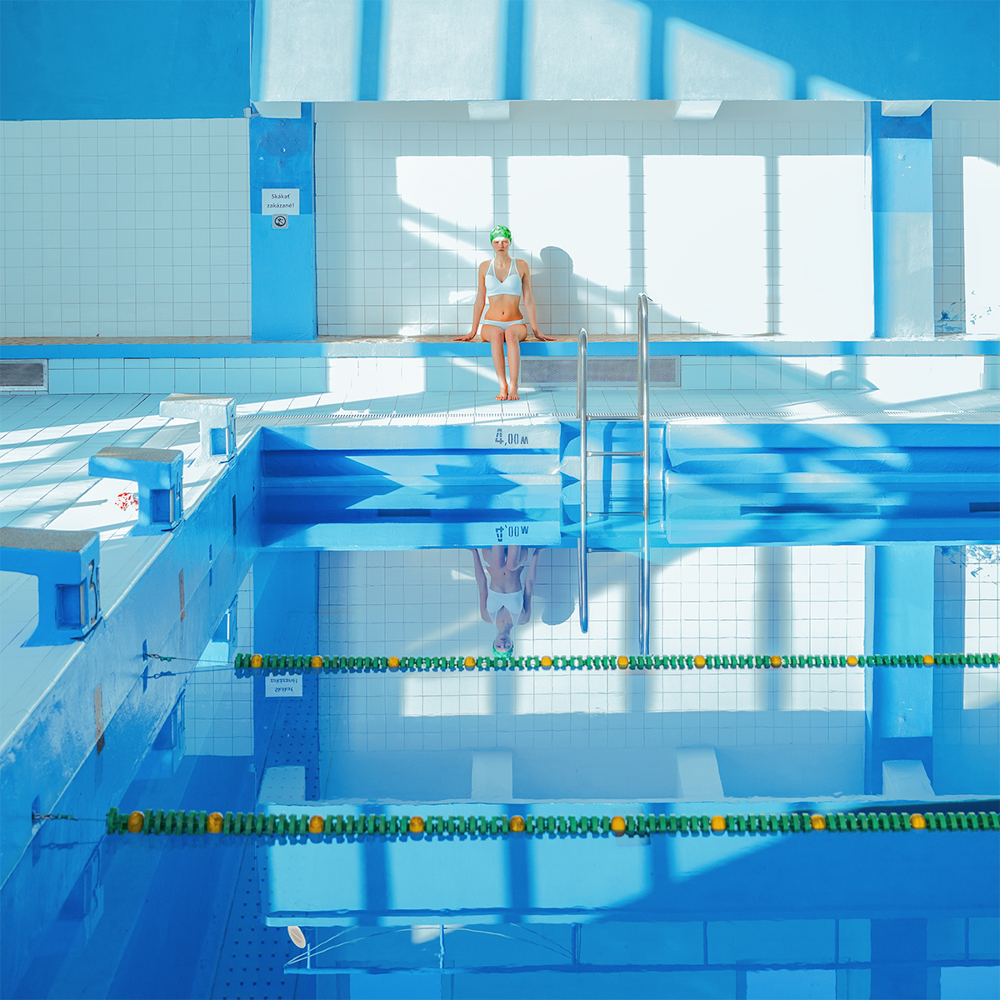 Maria’s distinctive style departs from traditional portraiture and focuses on experimentation with space, color and atmosphere. Taking an interest in Socialist era architecture and public spaces, Maria transforms each scene with a modern freshness that highlights the depth and range of her creative palette. The human body throughout her oeuvre is more or less a peripheral afterthought, often portrayed as aloof and demure rather than substantive. Carefully composed figures create thematic, dream-like scenes with ordinary objects. Her images hold a silent tension that hint at emergent possibilities under the lilt of clean and smooth surfaces.