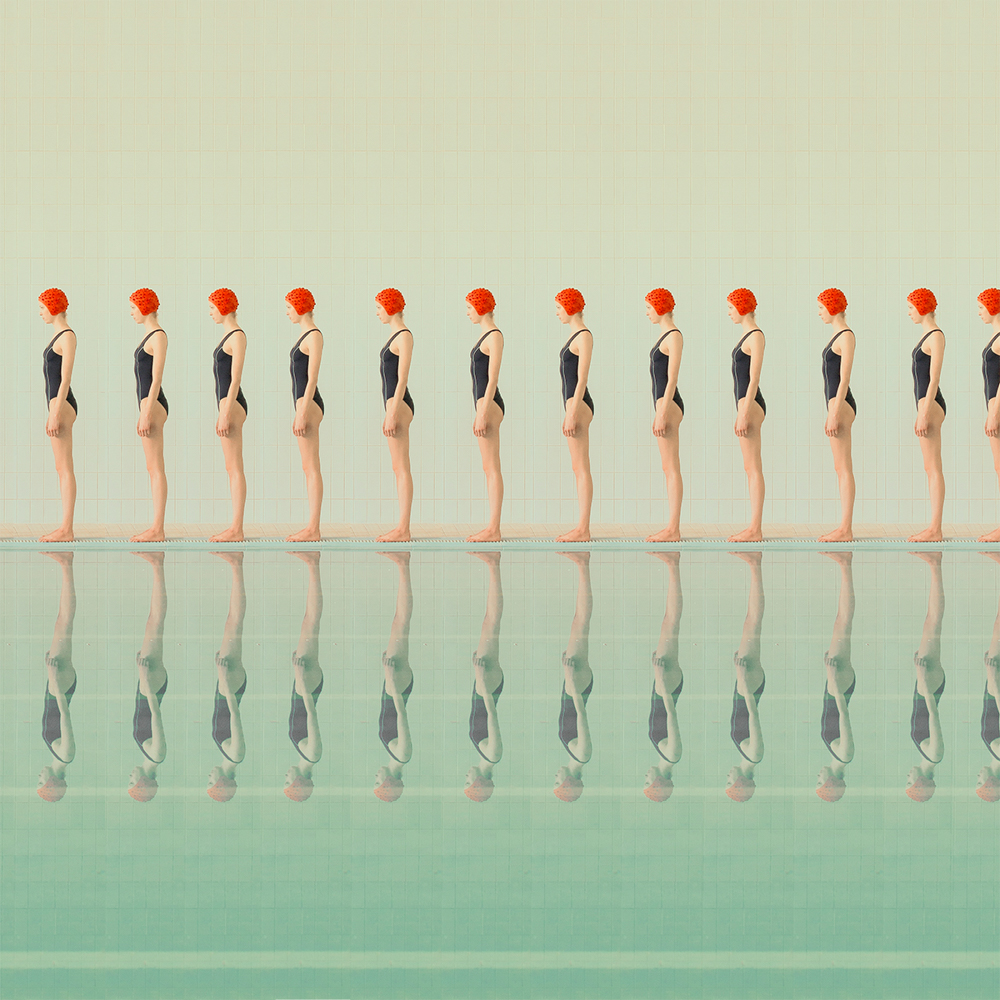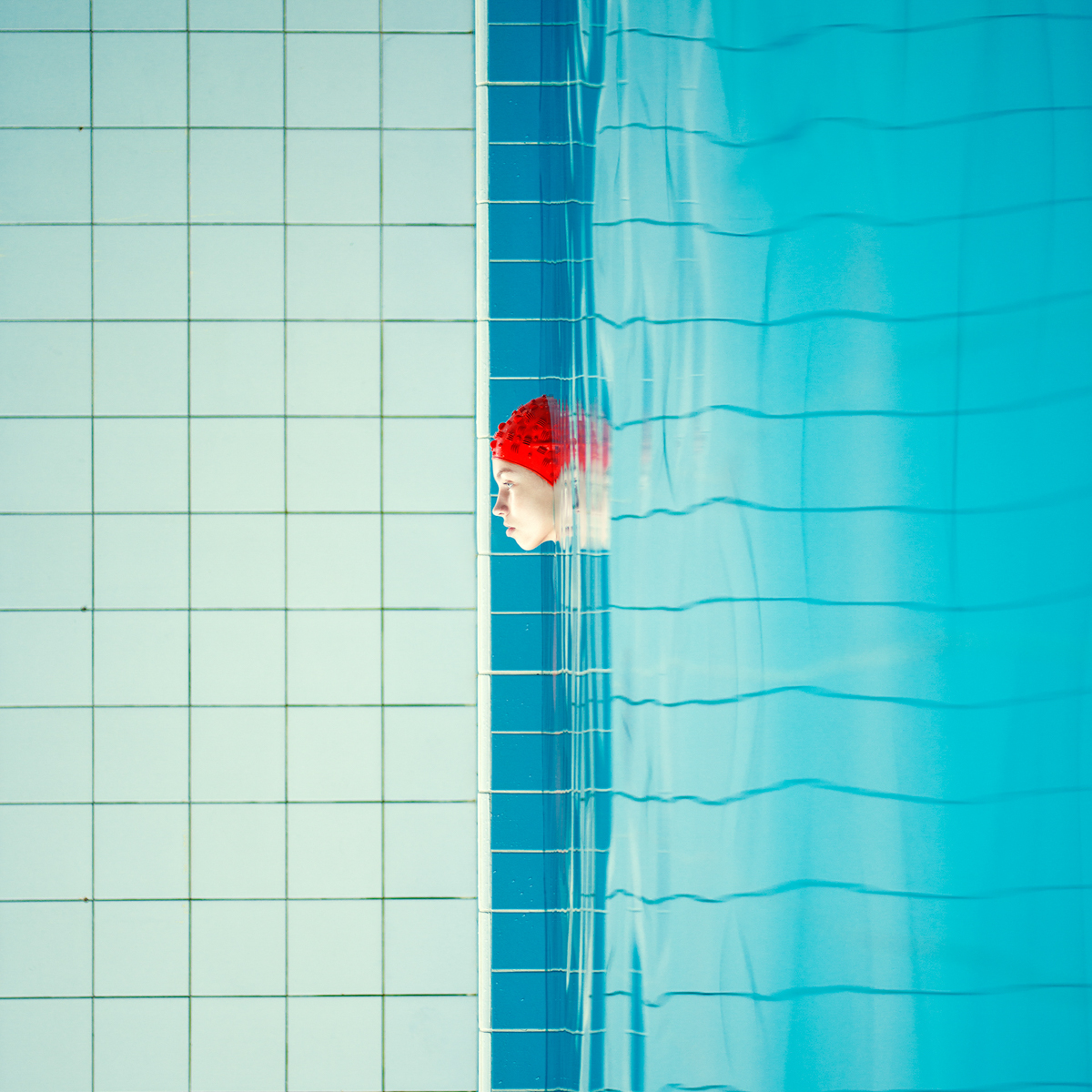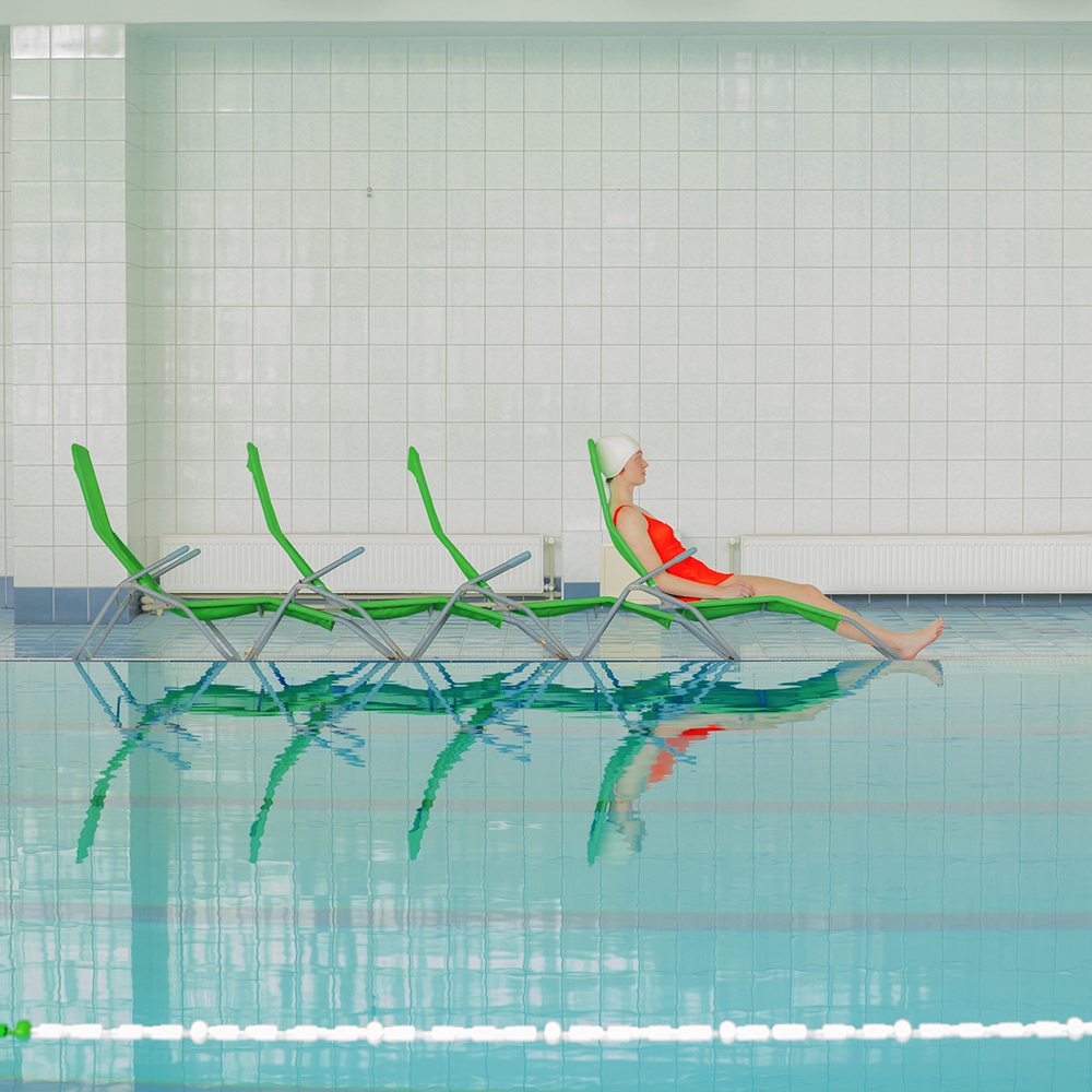Maria’s distinctive style departs from traditional portraiture and focuses on experimentation with space, color and atmosphere. Taking an interest in Socialist era architecture and public spaces, Maria transforms each scene with a modern freshness that highlights the depth and range of her creative palette. The human body throughout her oeuvre is more or less a peripheral afterthought, often portrayed as aloof and demure rather than substantive. Carefully composed figures create thematic, dream-like scenes with ordinary objects. Her images hold a silent tension that hint at emergent possibilities under the lilt of clean and smooth surfaces.