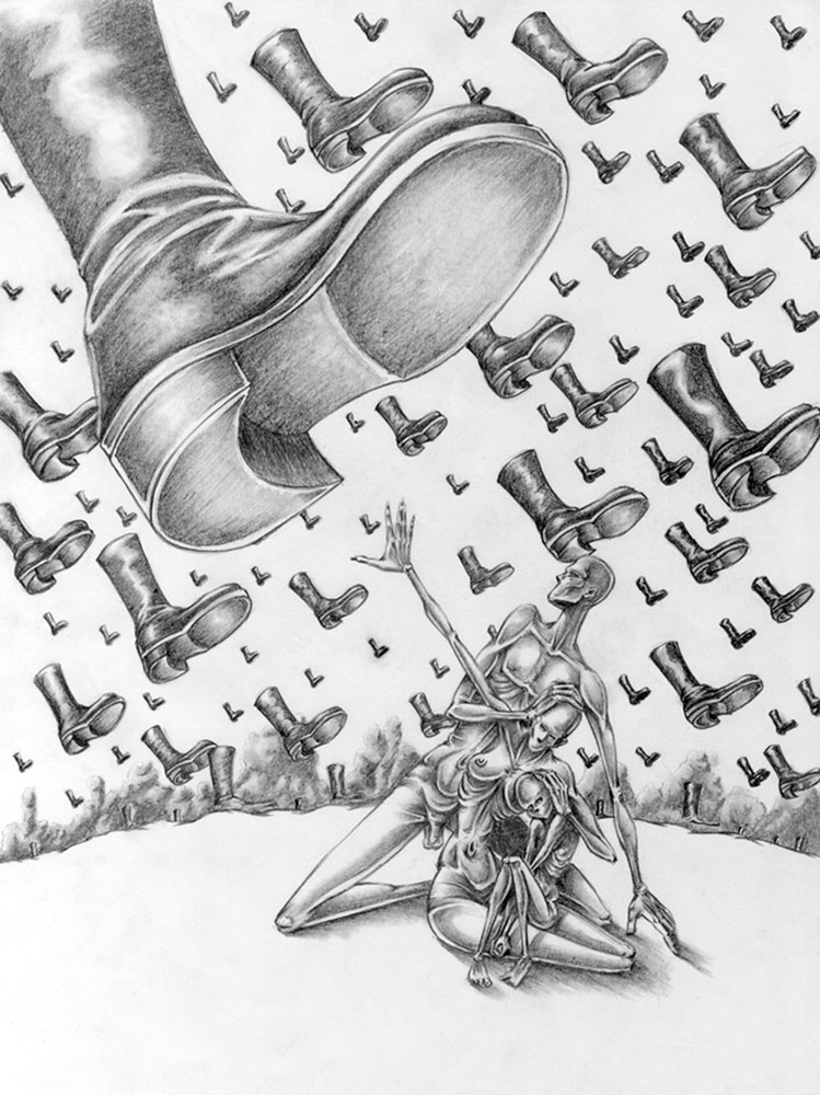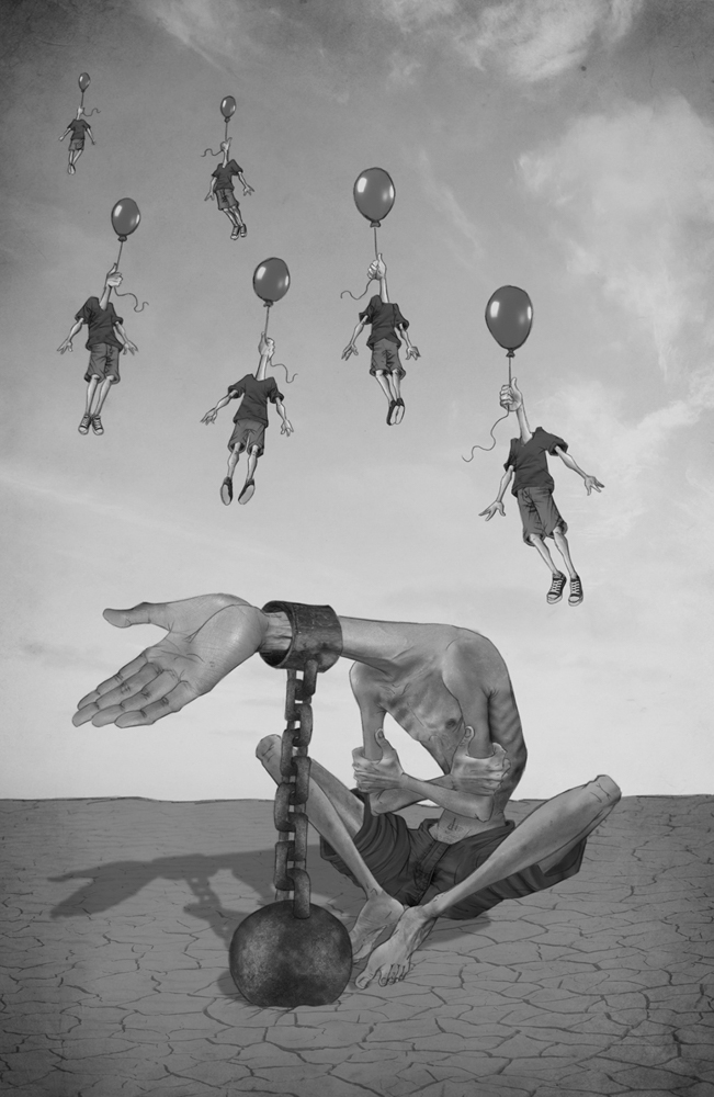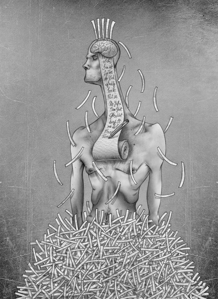 Matias al Margen is an Argentine illustrator from Buenos Aires. He refers to his drawings as “children of boredom, nonconformity or anger”. His illustrations are bleak portraits of our society that provide a probing depiction of humanity today. Exploring themes such as consumerism, technology, media and relationships, Margen’s illustrations carry a black humor.