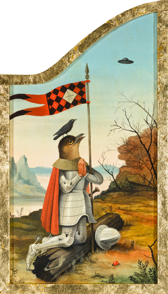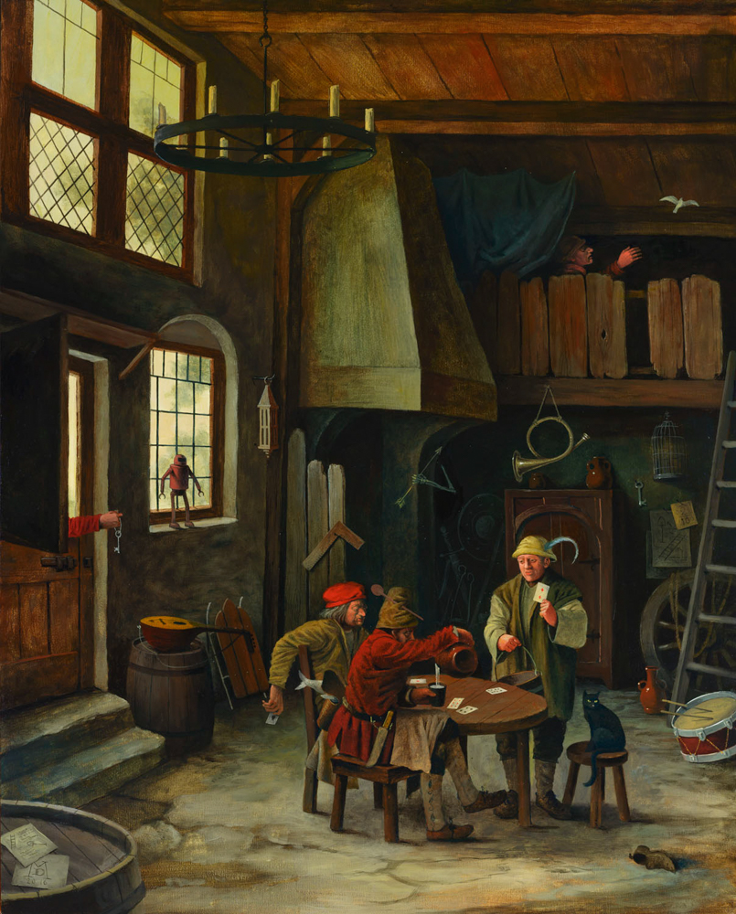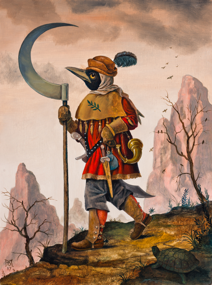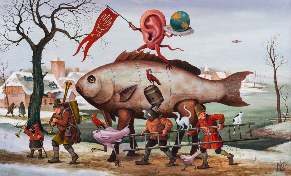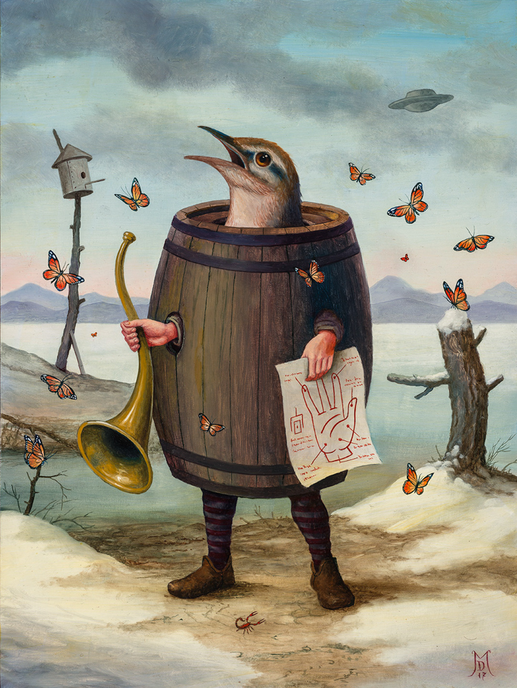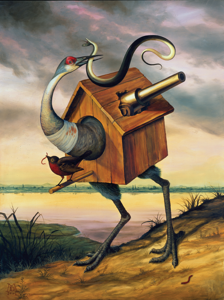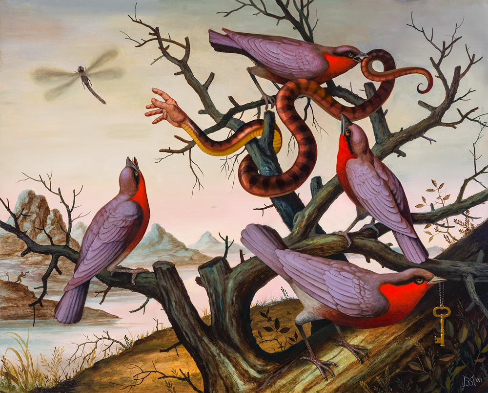 Mike Davis is a modern surrealist painter based in San Francisco. Self-taught, Davis began painting in 1997. His inspirations range from his mother's woodwork, hand-tooled leather, home projects, to art of the ancient world, surrealism, and the Flemish masters of the Northern Renaissance. Mike renders complex surrealist works embedded with symbols of mortality, folly and hubris, fixed within whimsical compositions.
