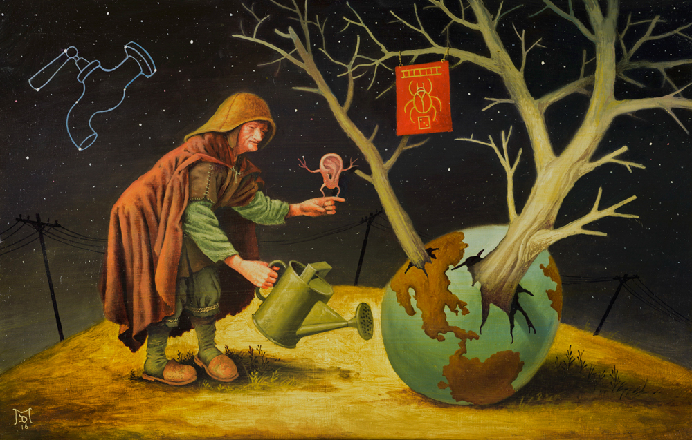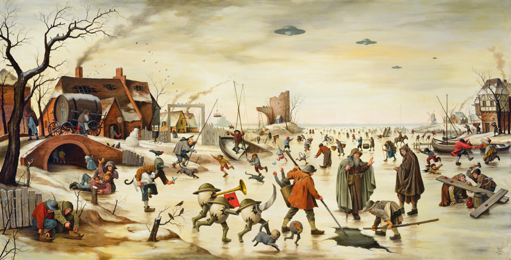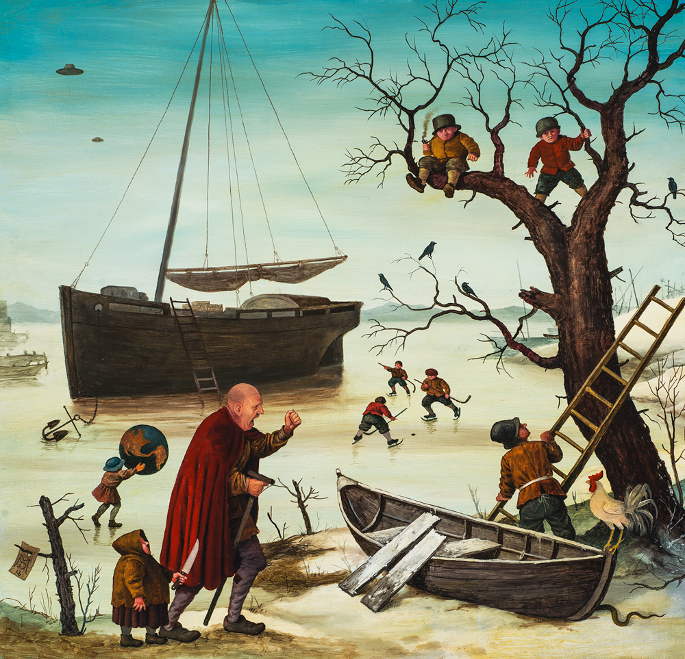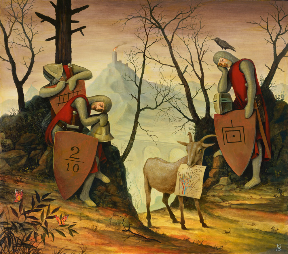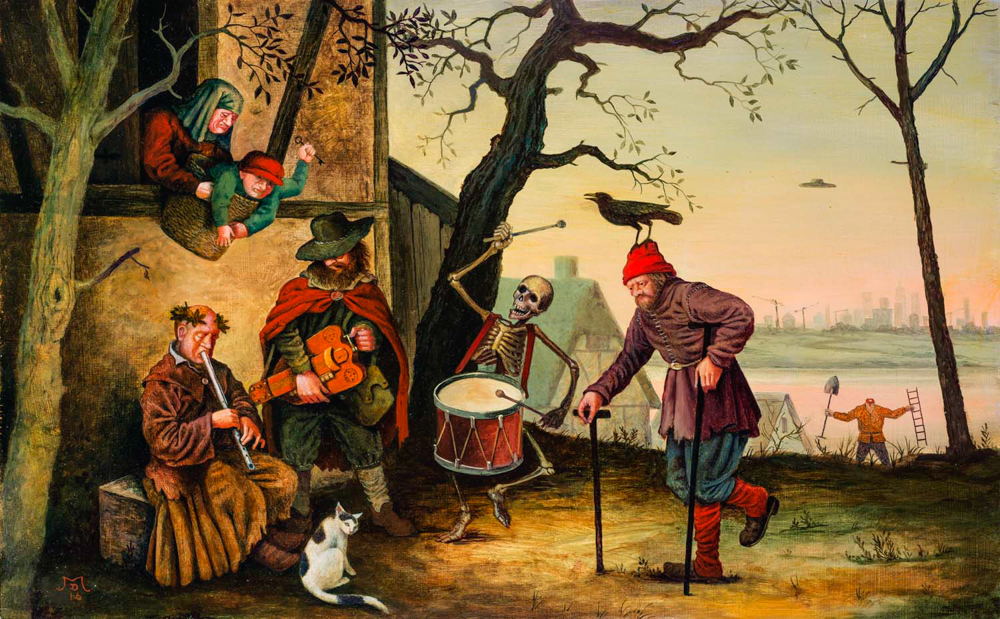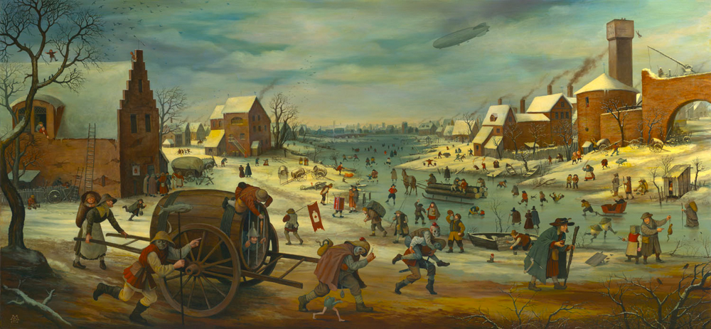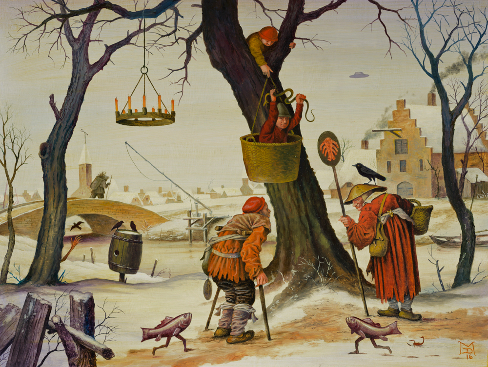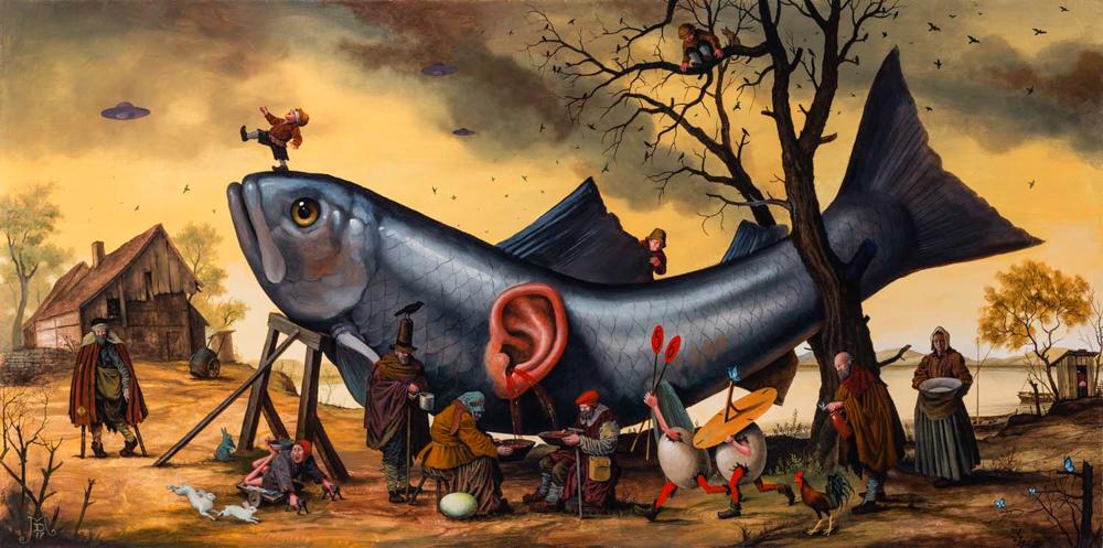 Mike Davis is a modern surrealist painter based in San Francisco. Self-taught, Davis began painting in 1997. His inspirations range from his mother's woodwork, hand-tooled leather, home projects, to art of the ancient world, surrealism, and the Flemish masters of the Northern Renaissance. Mike renders complex surrealist works embedded with symbols of mortality, folly and hubris, fixed within whimsical compositions.