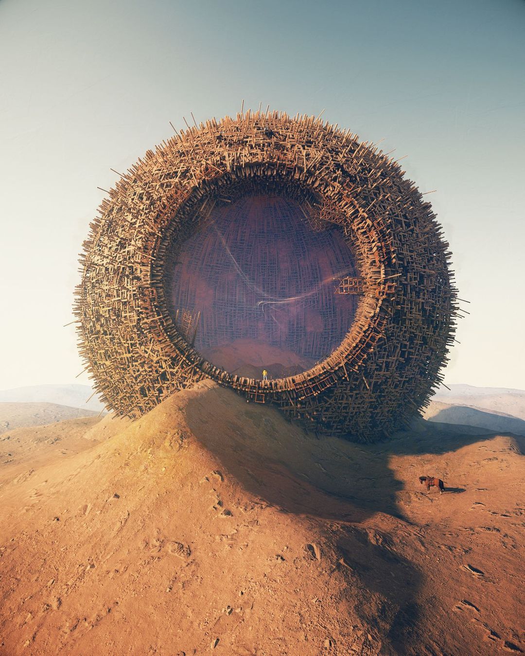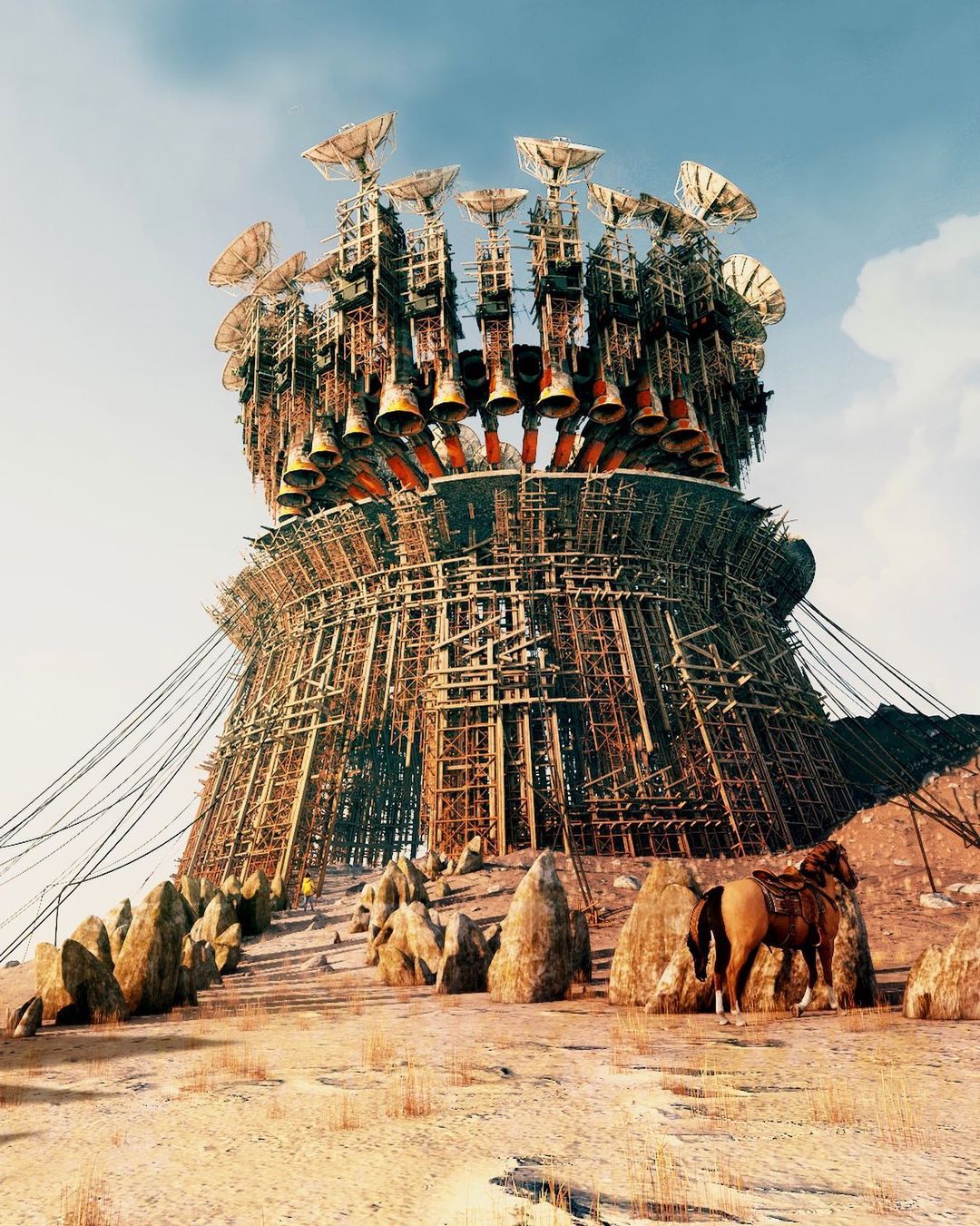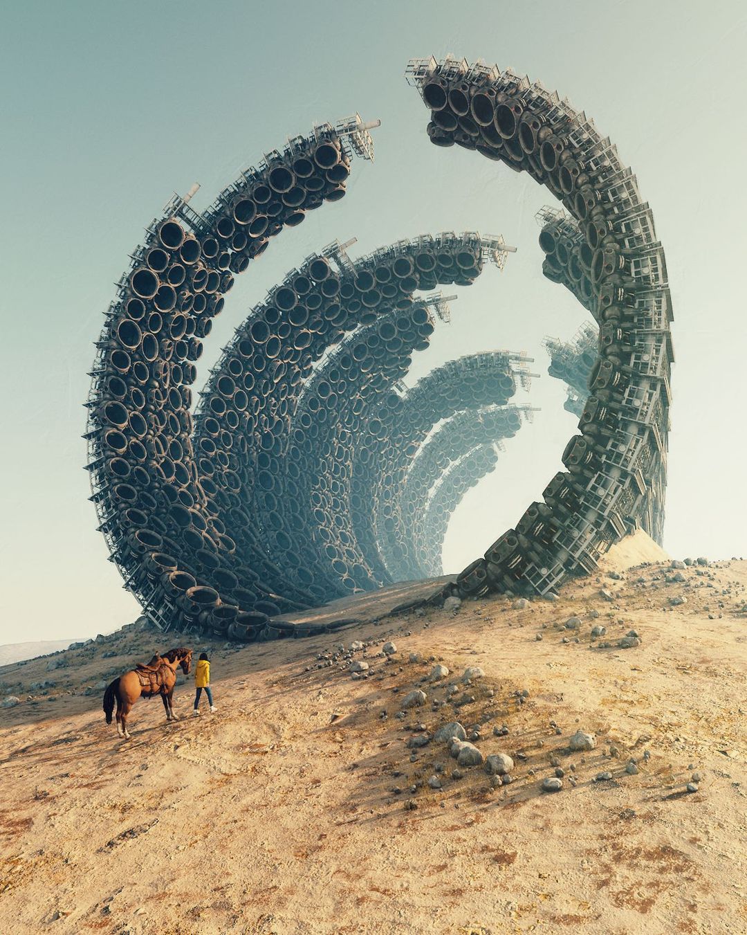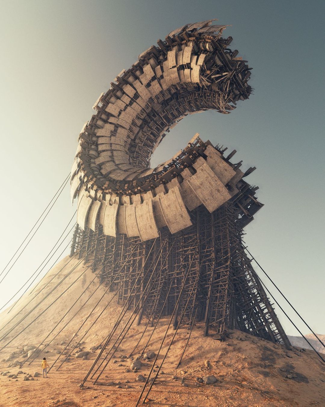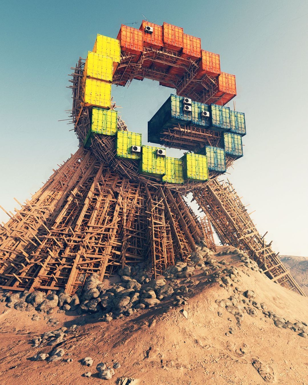 Ruben Kos, alias rbnks is a Digital Artist living in Utrecht, the Netherlands. The settings of his artworks describe, with a humorous touch, a mostly desolate post-apocalyptic world where ancient objects still survive. In this new era, these recognizable symbols and pop culture characters are the only remaining links to the past.